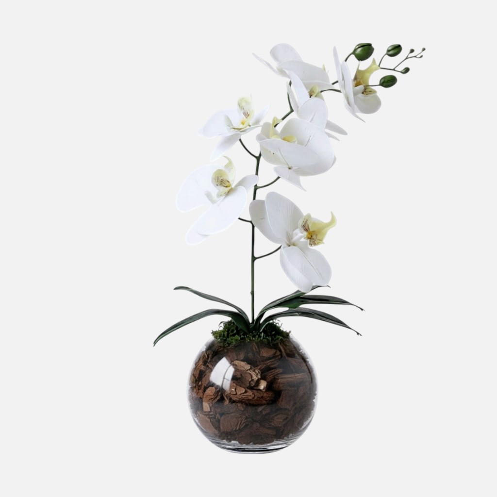 Arranjo de orquídeas em vaso de vidro Esfera