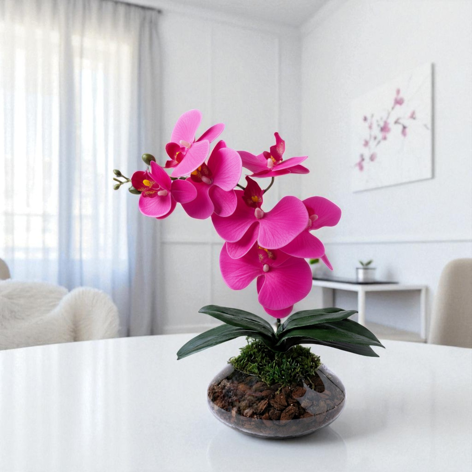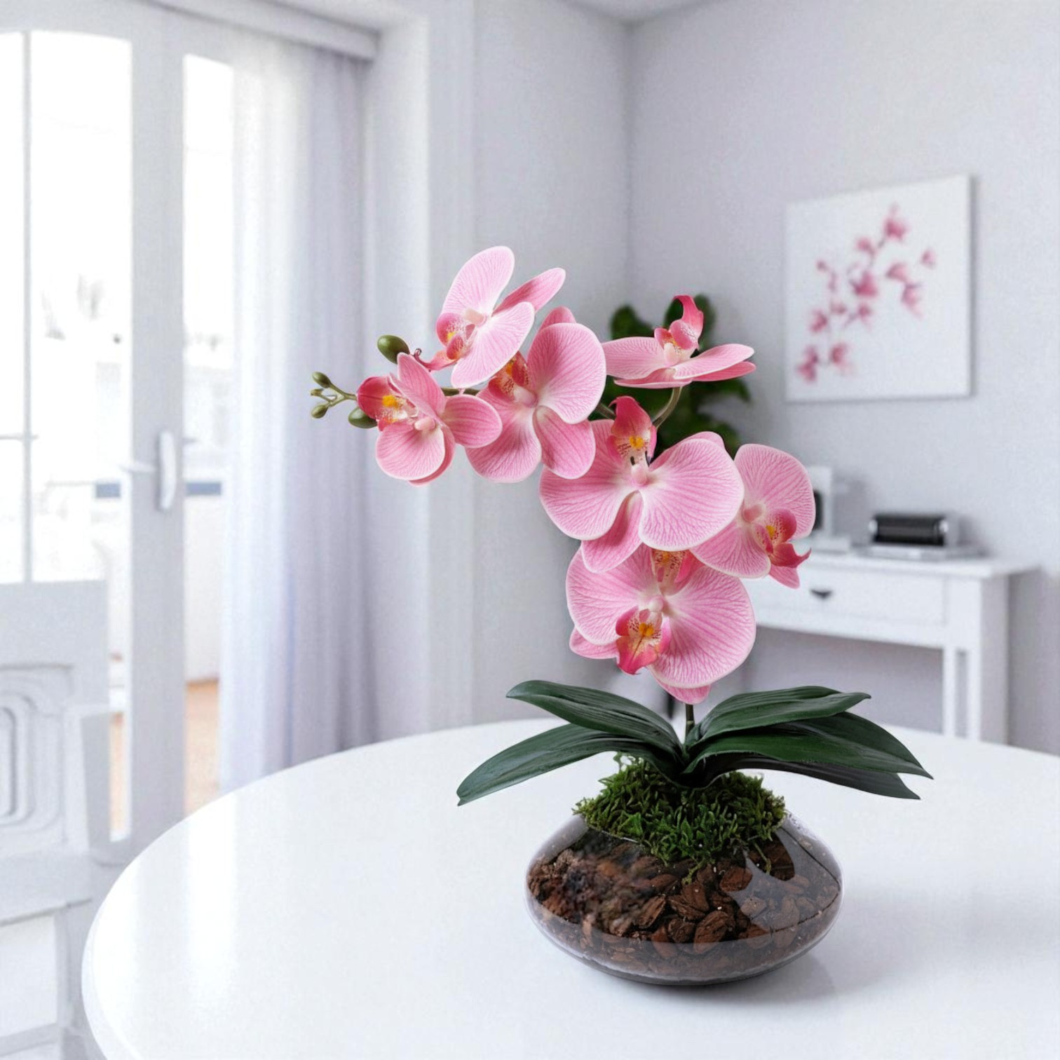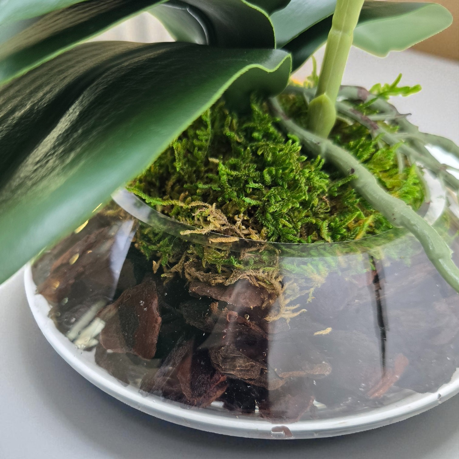 Arranjo de orquídeas em vaso de vidro Ônix