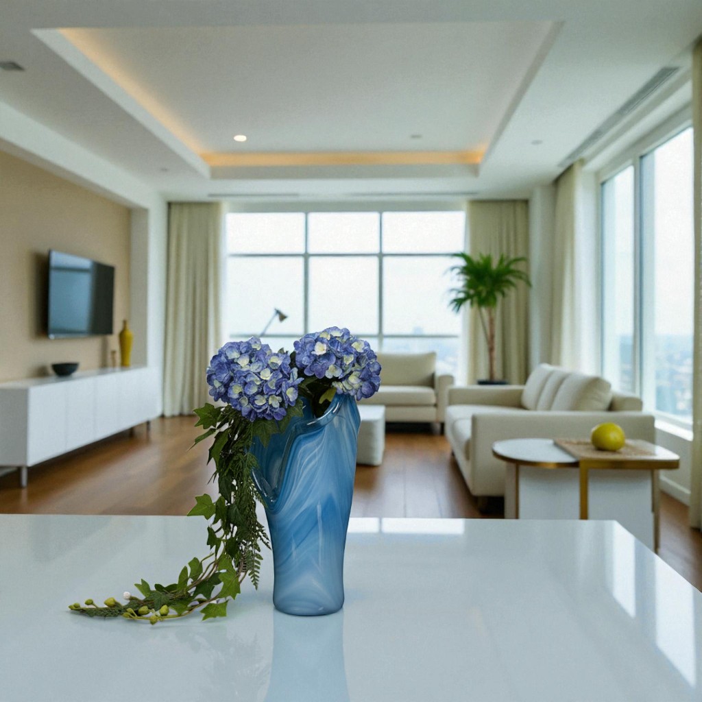 Jarra “2 Petali” azul branco 27x16x28 cm