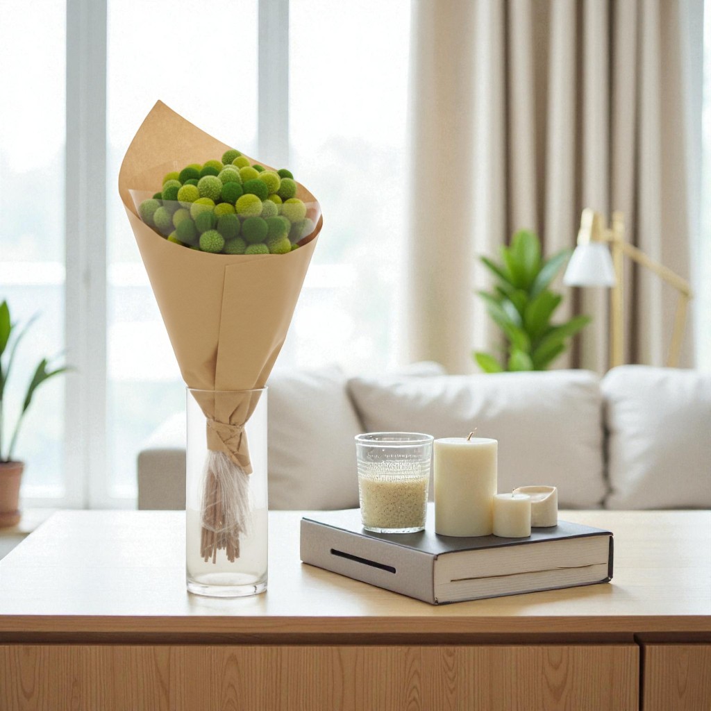 Ramo de flores secas “Craspedia” verde 20×50 cm